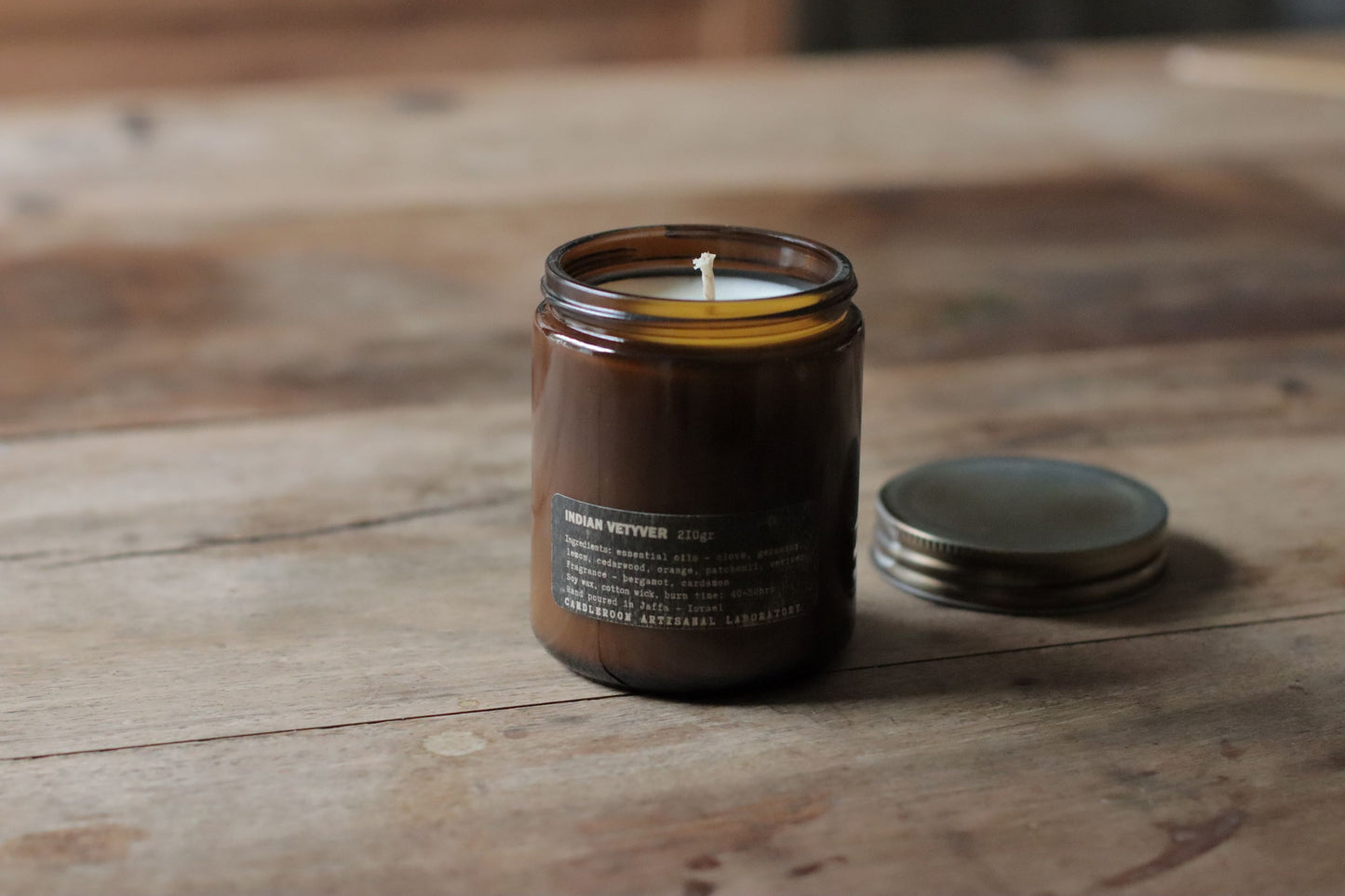 Hand poured in Israel with 100% all natural soy for an eco-friendly, clean burn. Uses a lead-free cotton wick, fragrance & essential oils.