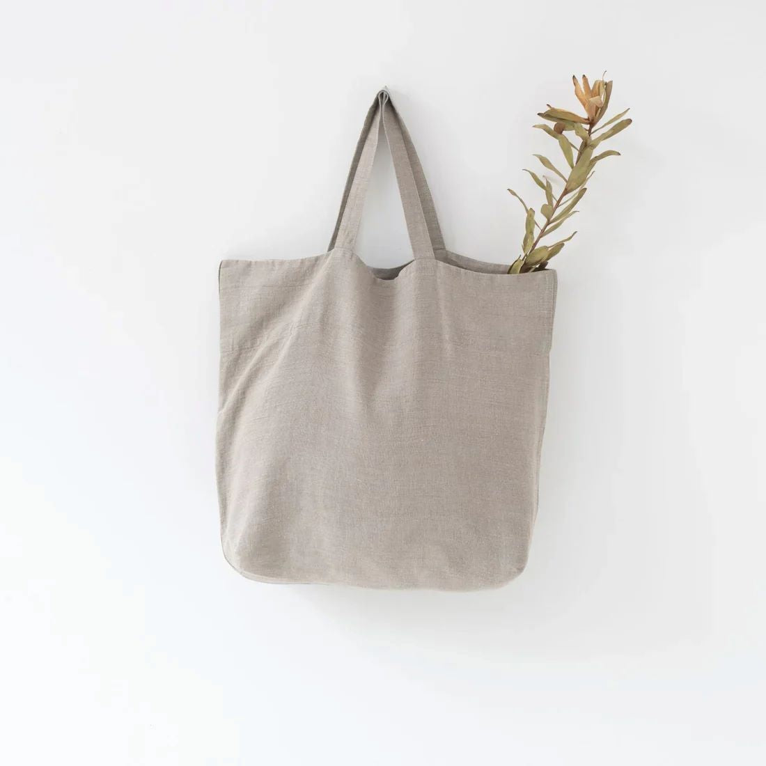 Large Linen Tote Bag to carry all of your essentials to work, beach, farmers market, or any place you want! By choosing a 100% linen bag, you take a small step to living your life more sustainably and reducing the environmental footprint.